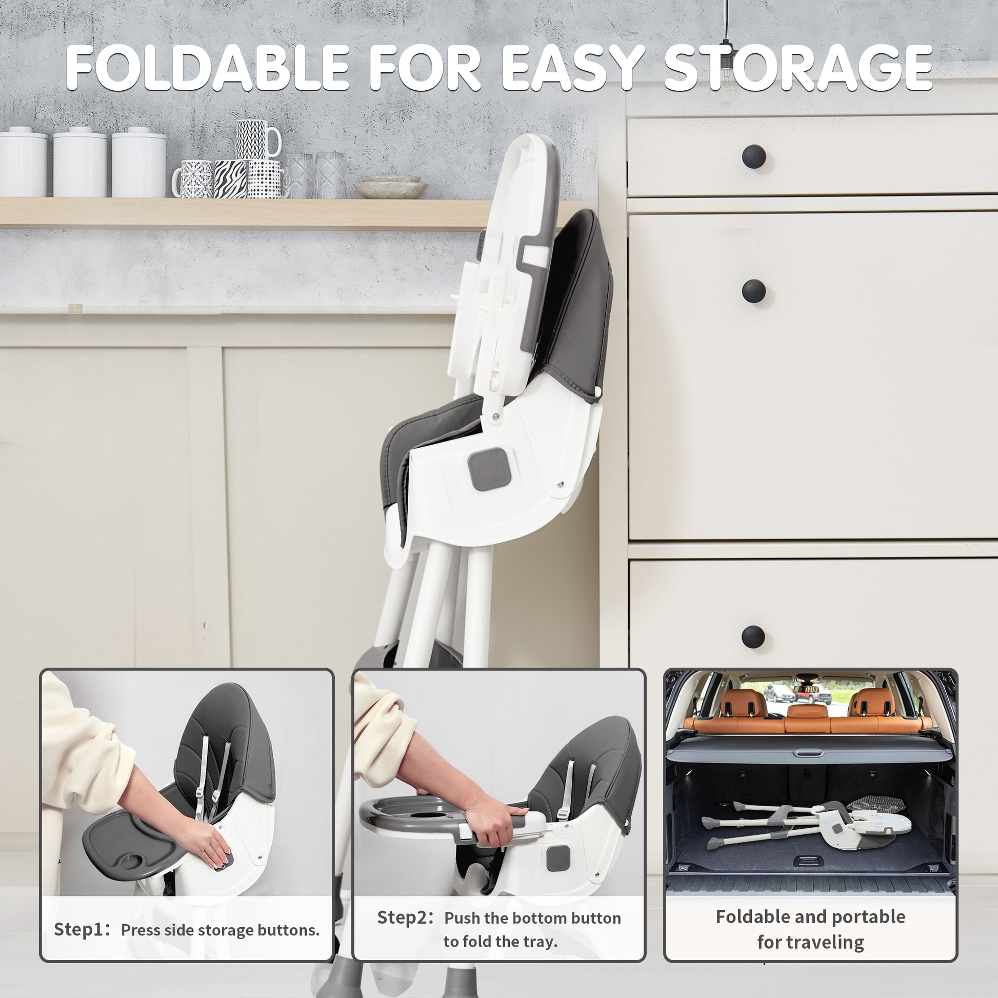 Napei 6- in -1 Baby High Chair with 5 -Point Safety Harness and Adjustable Dining Tray,Foldable High Chair for Space-Saving